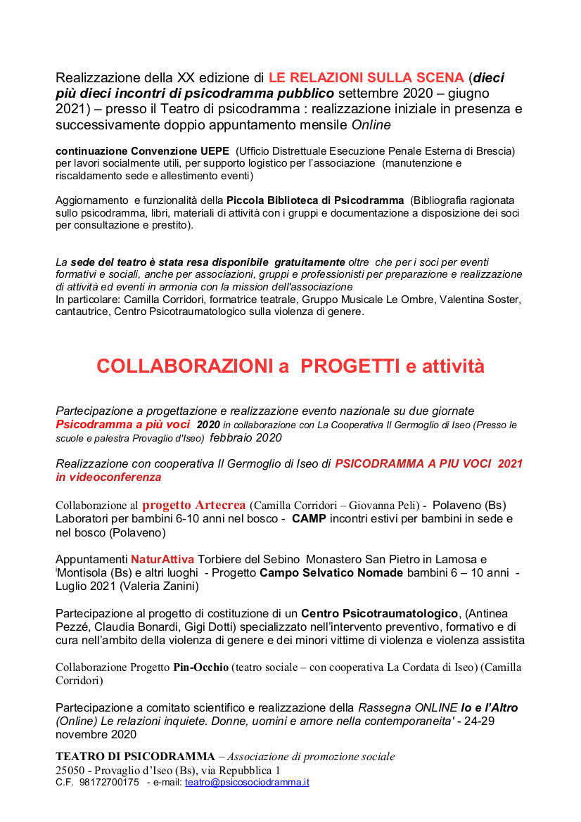 * Collaborazione con la cooperativa Il Germoglio in particolare per la realizzazione della XXVI e della XXVII edizione di PSICODRAMMA A PIU VOCI (febbraio 2026) (presidente Clelia Marini)
